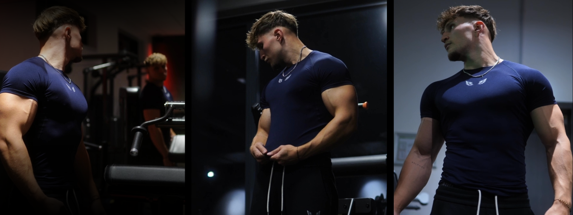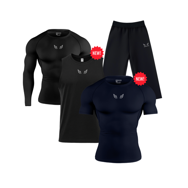Hol dir das Compression Shirt in Mystic Blue, das neue Tanktop und das Longsleeve – die Jogger kommt kostenlos dazu.
